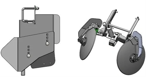 ●Sowing depth, increase 60mm adjustment. ●Potato row size can be adjusted by disk angle, spacing adjustment, convenient adjustment, with imitation pressure spring, to ensure that the amount of earth is consistent; |